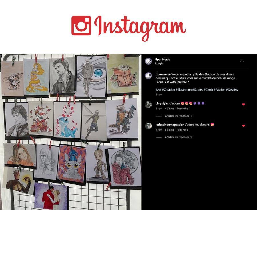 Le nom TLP Universe trouve son origine dans Tirer Le Portrait, un projet que j’ai lancé le 8 novembre 2009, alors que j’étais encore étudiante en arts. À cette époque, je publiais principalement mes dessins de portraits, posant ainsi les bases de ma première identité artistique.